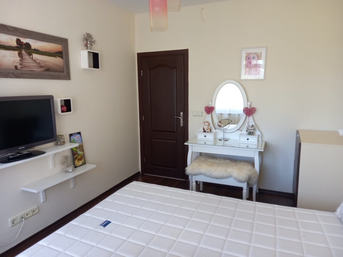 Просторен и светъл четиристаен апартамент до бул. Г. М. Димитров, в непосредствена близост до спирки на градски транспорт, вериги магазини за хранителни стоки, училище, детска градина. Жилището е 130 кв.м., разпределени във входно антре с портманто и голям гардероб с плъзгащи врати, просторна дневна с трапезария и кухненска част, обзаведена с всичко необходимо за комфорта на наемателите, три големи, непреходни спални, луксозна баня с тоалетна, отделна тоалетна, мокро помещение с пералня и сушилня и килер. От всички стаи има излаз на балкон, а прозорците са с външни ролетни щори. Отоплението е на ТЕЦ, но за комфорт във всички стаи има поставени и климатици. Изложение североизток / югозапад. Имотът се отдава дългосрочно на семейство, без домашни любимци. За повече информация - Росица Шейтанова, 0899985438. Още подобни оферти може да видите на адрес: www.realnet.bg