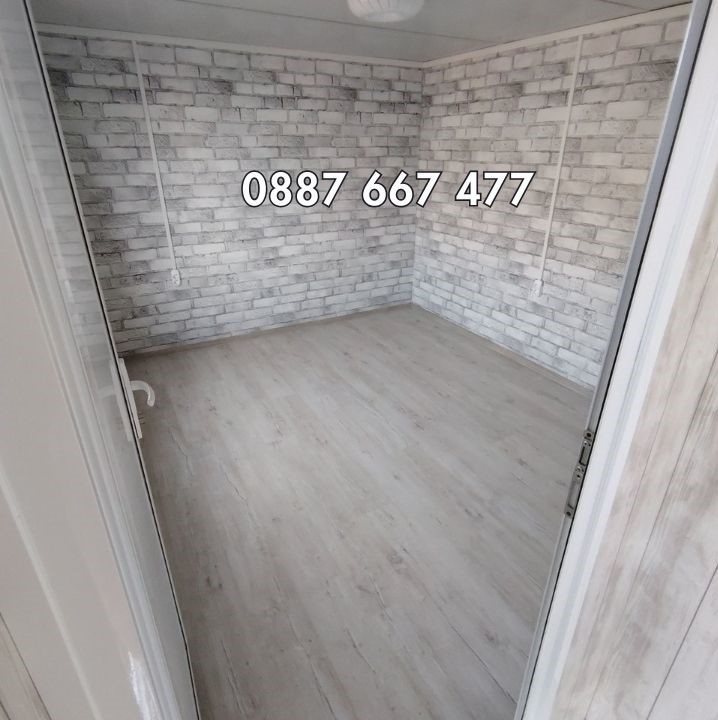 - Настилка: ламинат в помещенията, PVC настилка в санитарното помещение