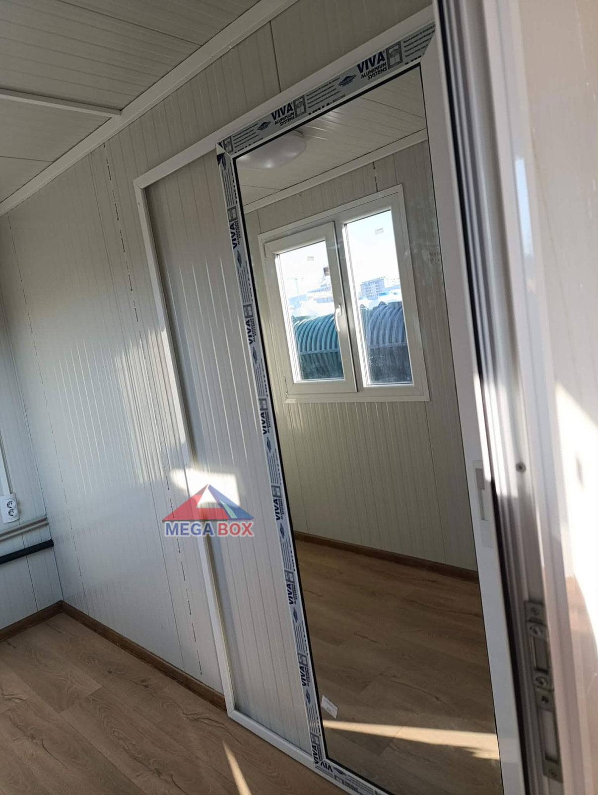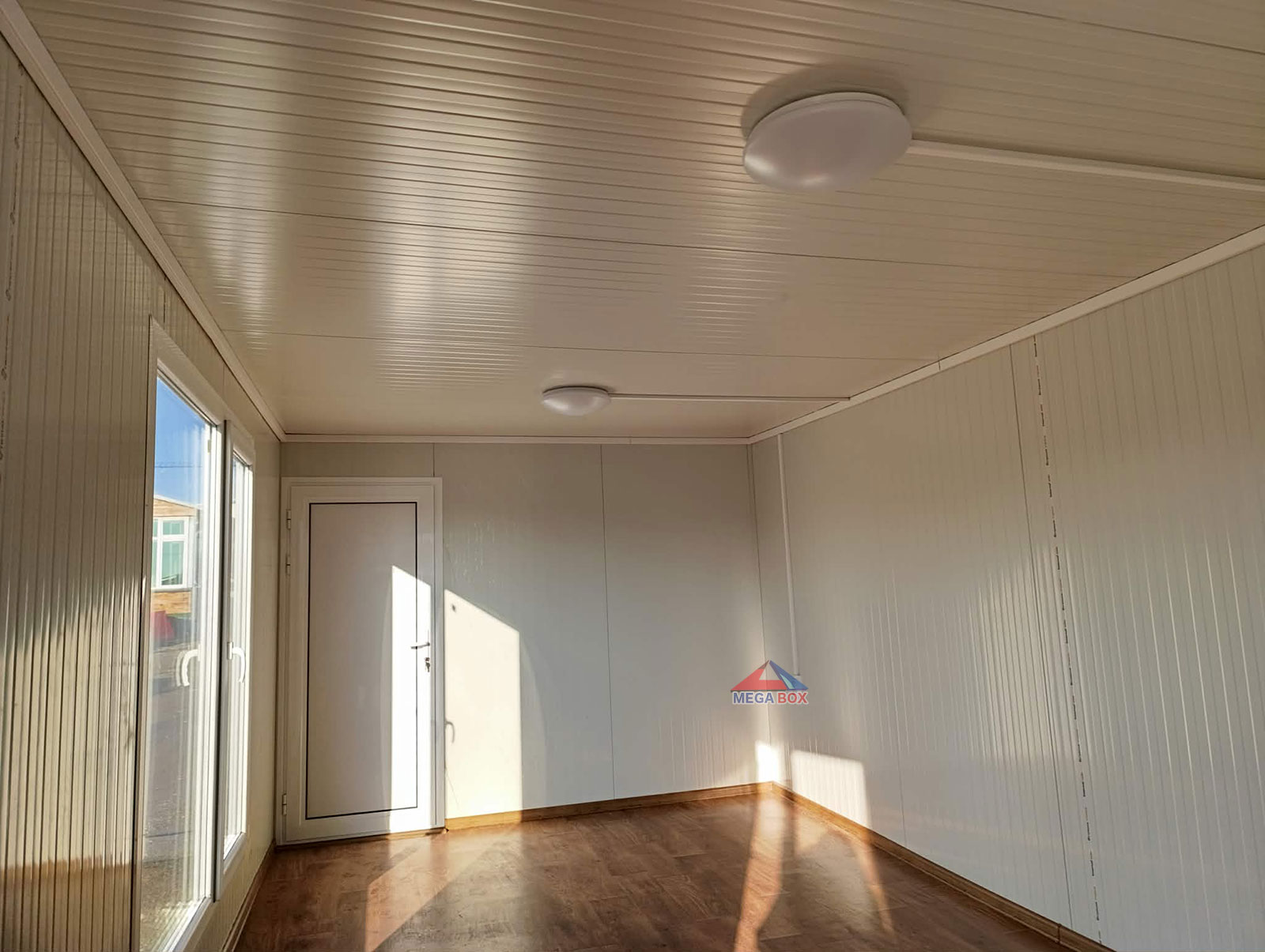 Оптимално разпределение: С размери 300х800х240 см, контейнерът предлага две отделни помещения и напълно оборудван санитарен възел. Висока енергийна ефективност: Външните и вътрешните стени са изработени от 40 мм сандвич панели с полиуретанова пяна, които гарантират отлична термо- и шумоизолация през всички сезони. Светлина и простор: Големите прозорци осигуряват изобилие от естествена светлина, правейки интериора уютен и приветлив.Технически характеристики: