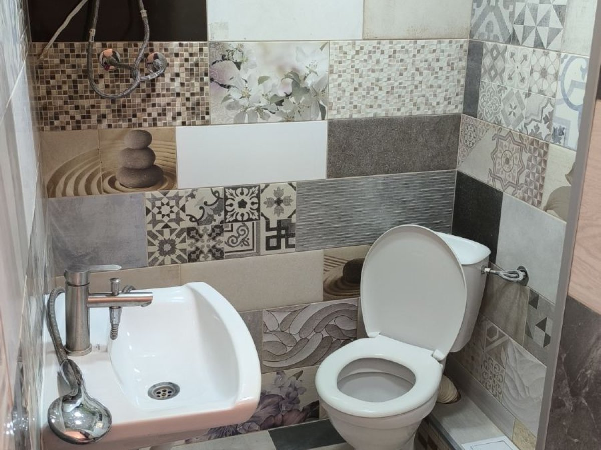 На първи етаж е следното разпределение: антре, всекидневна с вградена кухня, баня и тоалетна в едно, изба в две помешения, която може да се превърне в битови стаи (могат и да се обединят) или механа.
