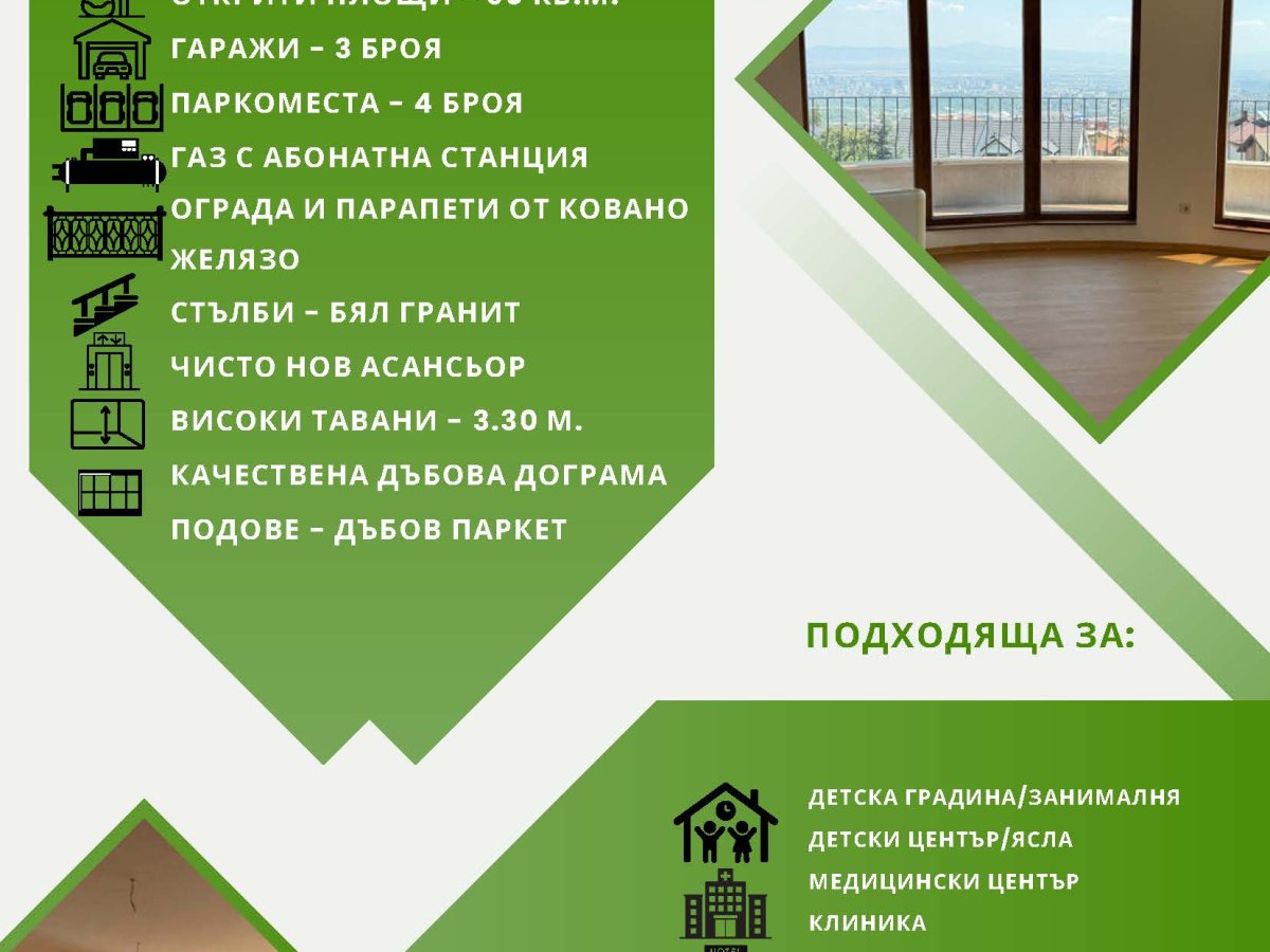 • Район с престижни имоти и отлична инфраструктура