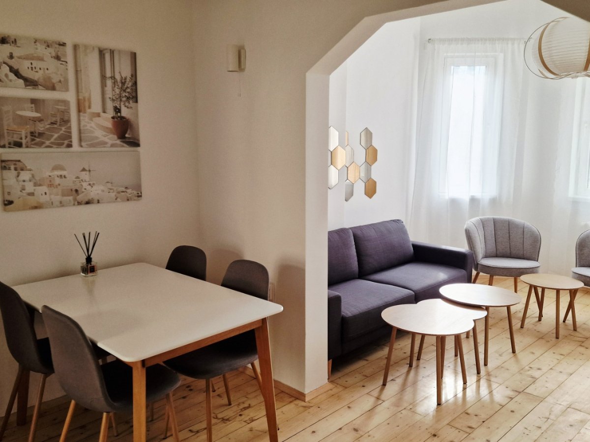 Отдава се под наем стилен, напълно обзаведен, топъл и уютен 3-стаен 80м2 апартамент, намиращ се на изключително комуникативно място в идеалния център - на ул. Фритьоф Нансен на 5мин пеша от НДК. Апартаментът е след основен ремонт и взима най-доброто от двата свята - има тавани на 3м височина и автентично дюшеме, типични за старите сгради в идеалния център, но едновременно с това е оборудван с чисто нови стилни мебели, електроуреди от висок клас и санитарен фаянс. Разполага с 2 спални (с висок клас матраци, единият от които не е използван към момента), 1 баня (с бойлер, за случаите, в които топлоподаването е преустановено от ТЕЦ-а поради авария или планов ремонт), хол със smart телевизор 55" на Philips, оборудвана кухня (с хладилник, фурна и котлони на Samsung), голямо антре/трапезария и балкон. Също така, има високоскоростен интернет (600mbps) и тв канали с приемник EON. За повече информация - Аделина Шопова, тел. 0898/595406. Още подобни оферти може да видите на адрес: www.realnet.bg